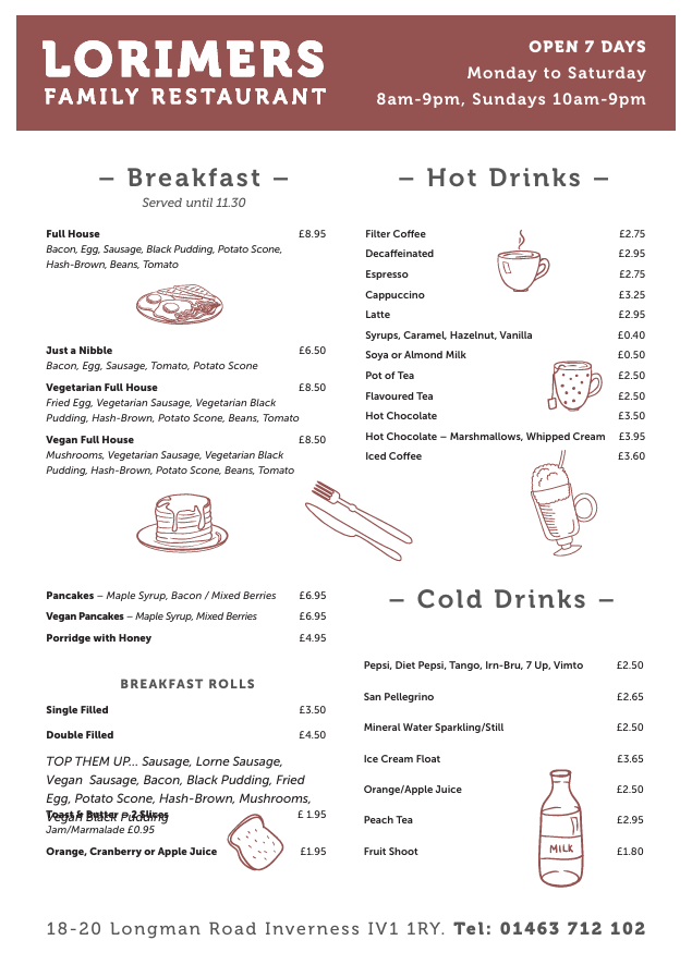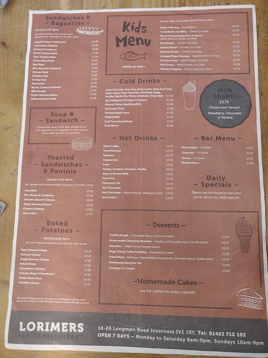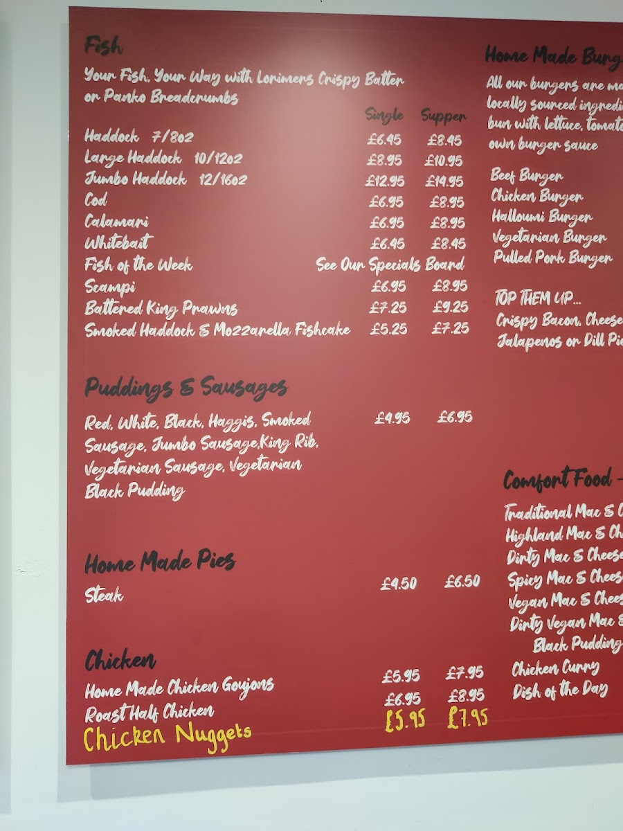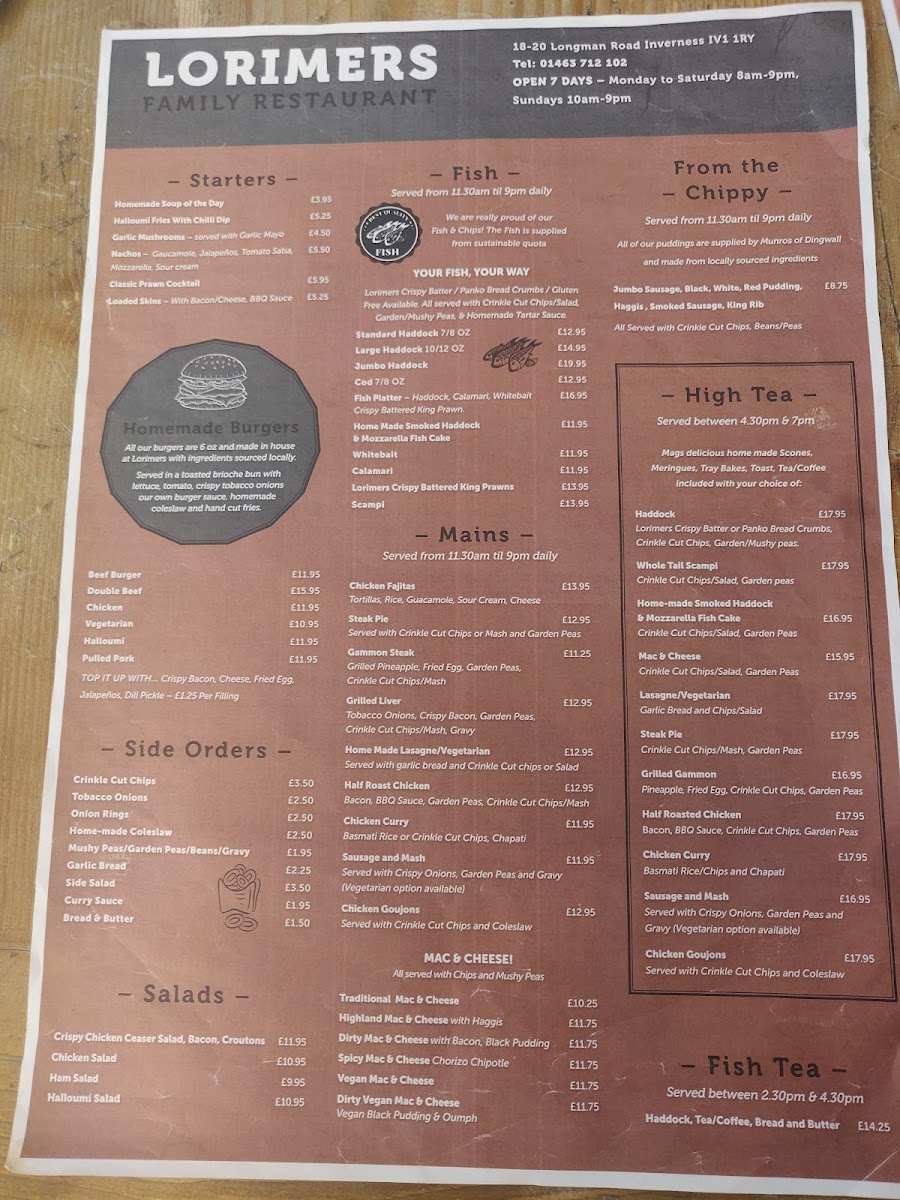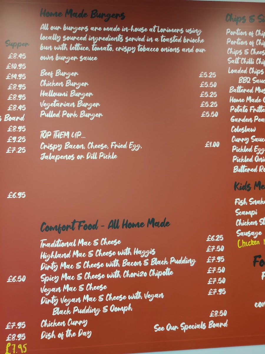 Welcome to Lorimers Family Restaurant, where the menu is filled with delicious and satisfying dishes that will leave you coming back for more. From our signature Fish and Chips Lorimers to Butch's Famous Steak and Ale Pie, every meal is crafted with care and flavor in mind. Don't miss out on our Full House Breakfast or a comforting bowl of Mac and Cheese. Indulge in our decadent Caramel & Strawberry Cheesecake or savor the crunch of our Jumbo Haddock Supper. Whether you're craving a hearty meal or a sweet treat, Lorimers Family Restaurant has something for everyone. Visit us at 18-20 Longman Rd and taste the best of what we have to offer.